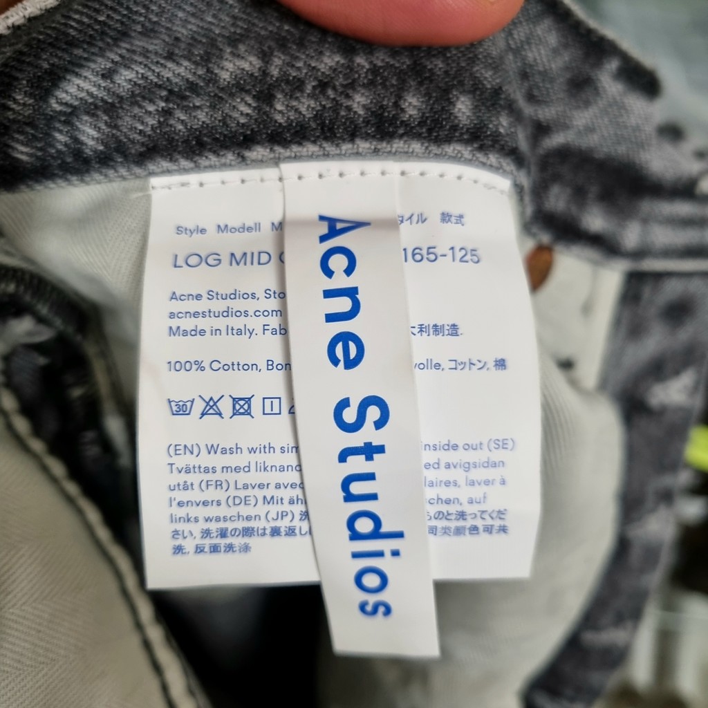 2019년도에 아크네 스튜디오에서 발매한 블라 콘스트 그레이 데님 팬츠입니다. 일반적인 그레이 팬츠와 다르게 워싱이 많이 들어간 데님 팬츠이며 니트와 신발로 유명한 아크네 스튜디오이지만 데님 팬츠도 수준급으로 만든다는걸 보여준 팬츠입니다.