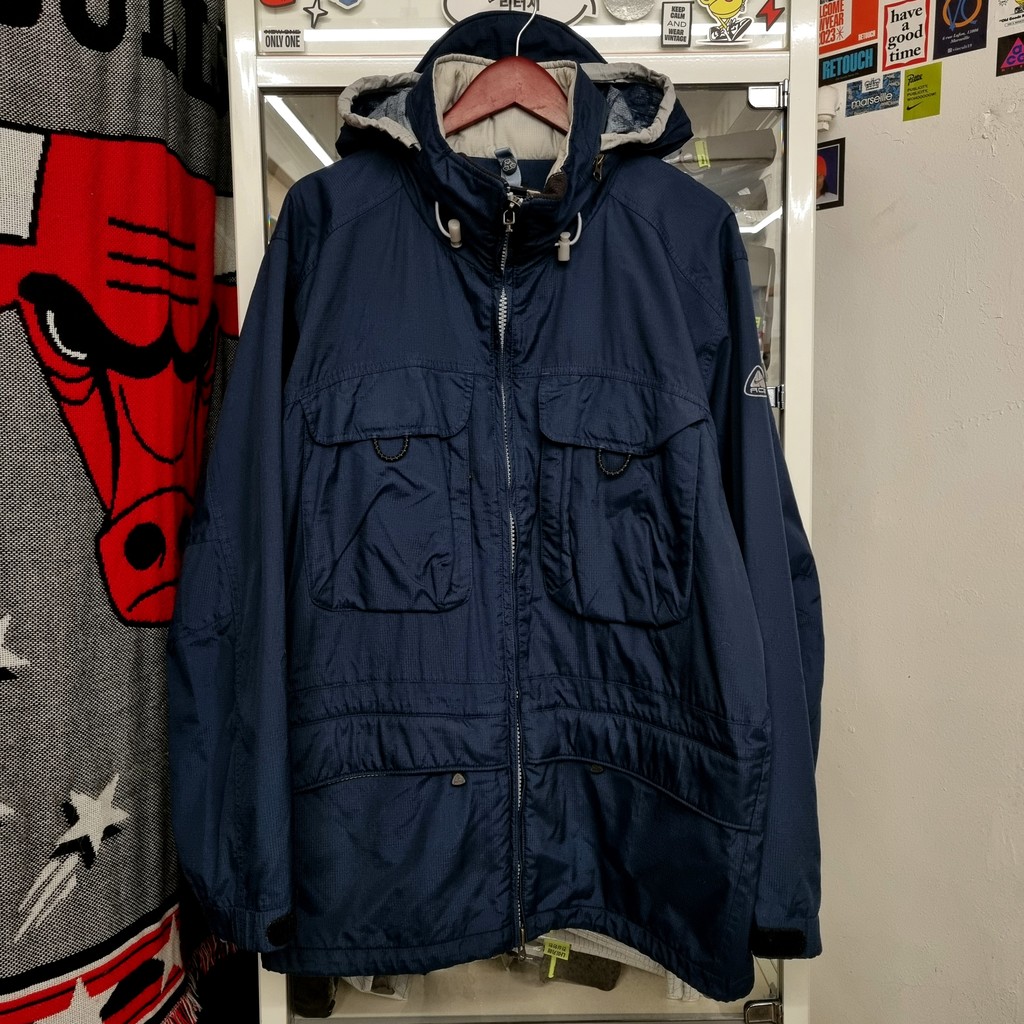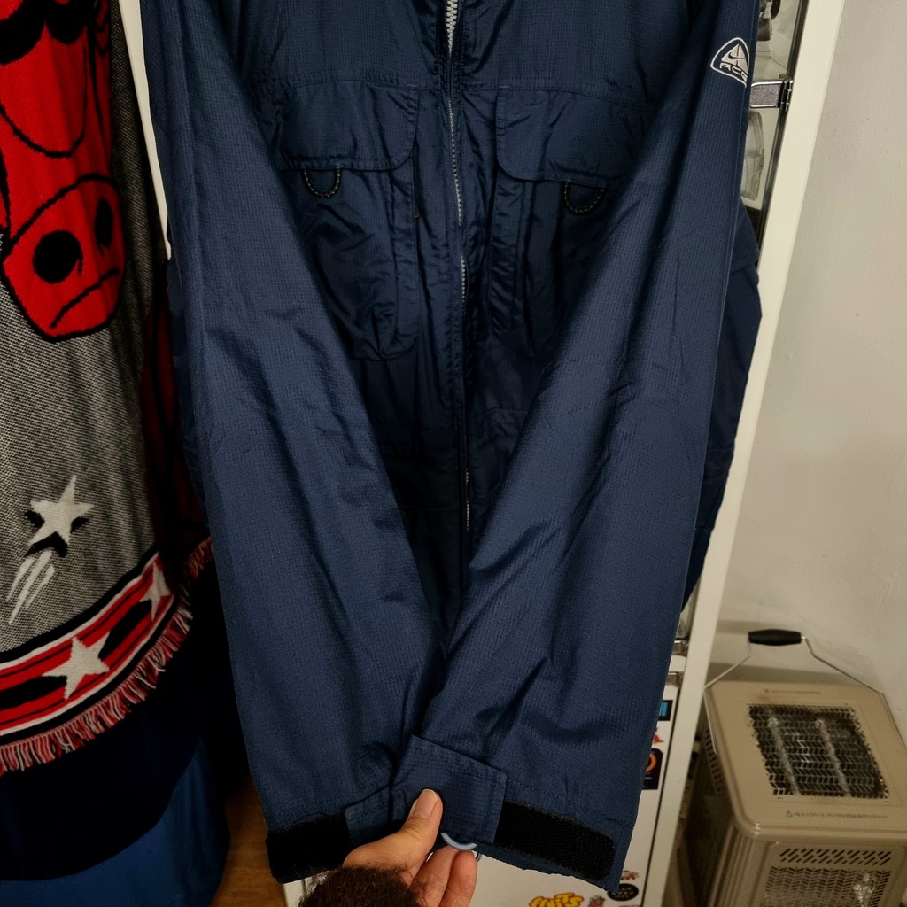 2000년대 나이키 ACG에서 발매한 립스탑 자켓 네이비 컬러 제품입니다. ACG자켓답게 굉장히 주머니가 많으며 후드를 넣었다 뺐다 할 수 있는 디테일도 있는 자켓입니다. 2way지퍼를 사용해 원하는대로 스타일링을 할 수 있는 립스탑자켓입니다.